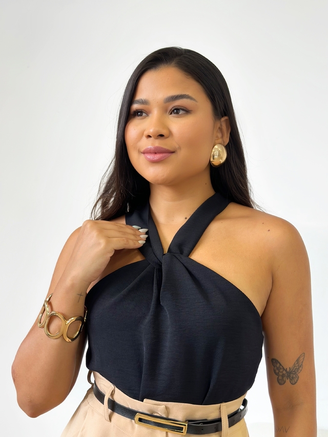 Blusa Detalhe Busto Preto Lorena, confeccionado no crepe. O detalhe no busto adiciona um charme especial, destacando delicadamente essa área do corpo de forma sutil e elegante. Feita com tecido de alta qualidade, esta blusa oferece conforto e caimento impecável, enquanto o design versátil permite combinações infinitas para criar looks únicos e cheios de personalidade.