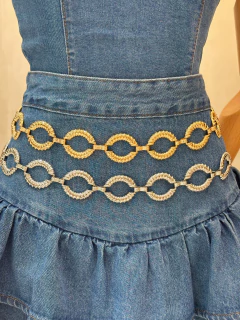Um clássico repaginado com brilho e sofisticação. O Cinto Nanda aposta em elos ovais com textura metálica que capturam a luz e valorizam a silhueta com leveza. Disponível em dourado/prateado, é o acessório ideal para elevar looks casuais ou complementar produções noturnas com muito estilo.