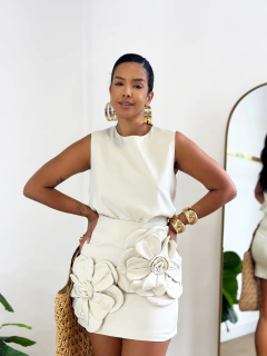 Conjunto Blusa Saia Flor confeccionado no algodão. É a escolha perfeita para quem busca elegância e frescor em um só look. Ideal para diversas ocasiões, este conjunto combina sofisticação com um toque de feminilidade, destacando-se pela sua estampa floral vibrante e design elegante.