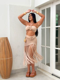 O Conjunto Cropped Saia Hot Pants Bele é a escolha perfeita para quem deseja um look que une estilo e elegância. Com um toque de delicadeza, este conjunto traz um design encantador com suas flores aplicadas, ideal para uma noite de verão inesquecível.