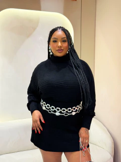 - Detalhes que fazem a diferença no visual: gola alta,mangas longas e seu design em tricõ.