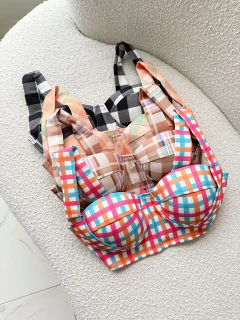 - Detalhes que fazem a diferença no visual: xadrez, recortes no busto.