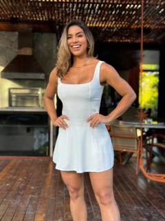 Macaquinho Saia Rodada Off Jaque, confeccionado no poliester, uma peça super feminina. com saia rodada e short por baixo o que deixa a peça extremamente confortável, possui trançado nas costas. Pode ser usado em várias ocasiões, principalmente em encontros casuais!!!