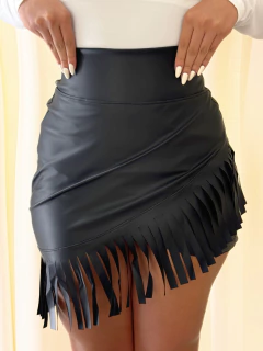 Saia Com Franja Preta Livia,destaca-se pelas franjas que trazem movimento e um toque sofisticado ao visual.Ideal para quem quer apostar em um look moderno e elegante, cheio de charme e feminilidade.