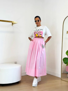 Saia Godê Lara confeccionado no algodão. Confeccionado em material de alta qualidade, como o algodão, que proporciona um caimento impecável e é fácil de cuidar. O tecido é leve e confortável, ideal para usar durante todo o dia, além de ser uma peça queridinha entre as fashionistas para as próximas estações do ano.