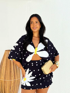 O Shortsaia Poá Sara é a peça perfeita para quem busca praticidade sem abrir mão do estilo. Com estampa clássica de poás e detalhe floral moderno, ele traz um ar divertido e elegante ao mesmo tempo. O design envelope com amarração frontal garante charme extra, além de valorizar a silhueta com conforto e liberdade de movimento.