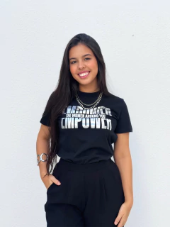 A T-Shirt Empower Preto é a escolha perfeita para quem deseja um visual casual, mas com uma mensagem poderosa. Com sua estampa inspiradora, ela transmite força, confiança e empoderamento, sendo ideal para quem quer se expressar de maneira autêntica e moderna. Feita em tecido confortável e de qualidade, a camiseta oferece um caimento perfeito e liberdade de movimento, tornando-a ideal para o dia a dia. Seu design simples, mas impactante, combina facilmente com jeans, shorts ou até saias, criando looks versáteis e cheios de personalidade. A T-Shirt Empower é uma peça essencial para quem busca unir estilo e propósito em um único visual.