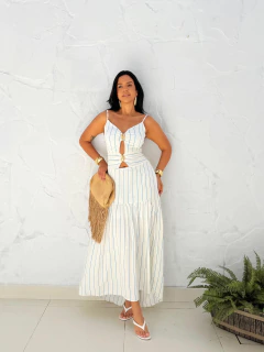 O Vestido Aplicação Lívia é sinônimo de elegância e frescor em uma única peça. Com estampa listrada moderna e detalhes em aplicações de pedraria que trazem sofisticação, ele combina delicadeza e estilo em uma proposta versátil. Seu caimento leve valoriza a silhueta, enquanto os recortes estratégicos e as alças finas proporcionam um toque atual e feminino.