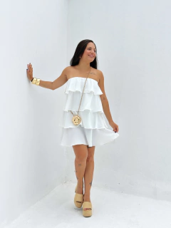 Vestido Babados Off White Quel confeccionado em poliéster. O Vestido Babados Off White Quel é uma verdadeira celebração de frescor e feminilidade. Com babados delicados na cor Off White, ele traz um toque sofisticação a qualquer ocasião. Criado em homenagem à nossa chefinha Quel, esta peça reflete a energia contagiante e o estilo único dela. Perfeito para quem deseja brilhar com charme e elegância em cada momento.