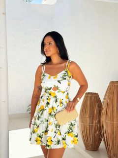 O Vestido Estampa Carla é a peça ideal para quem busca frescor, charme e estilo em uma única escolha. Com estampa vibrante de limões, ele transmite alegria e leveza, sendo perfeito para dias ensolarados e ocasiões descontraídas. Sua modelagem romântica, com saia fluida e detalhe de alças duplas, garante feminilidade e conforto em qualquer produção.