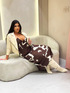 O Vestido Mídi Sofia é pura atitude com um toque de sensualidade. Com decote em V e alças finas, ele valoriza a silhueta de forma delicada, enquanto a estampa marcante em tons terrosos garante personalidade ao look. O comprimento mídi traz equilíbrio e sofisticação, perfeito para quem ama peças versáteis e cheias de estilo.